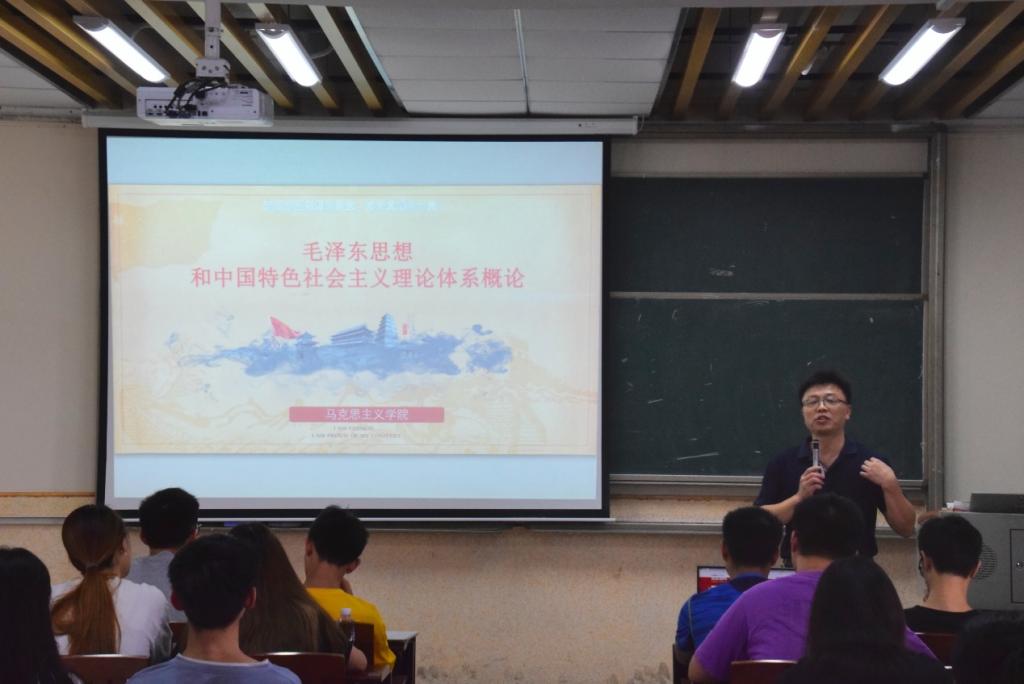 为深入学习贯彻习近平总书记在庆祝中国共产党成立100周年大会上的重要讲话精神,2021年9月22日,sunbet申博,申博官网,sunbet官网院长陈伟于莞城校区五号楼301为20级学生带来了以“毛泽东思想和中国特色社会主义理论体系概论--学制度,颂党恩”为主题的思政第一课。