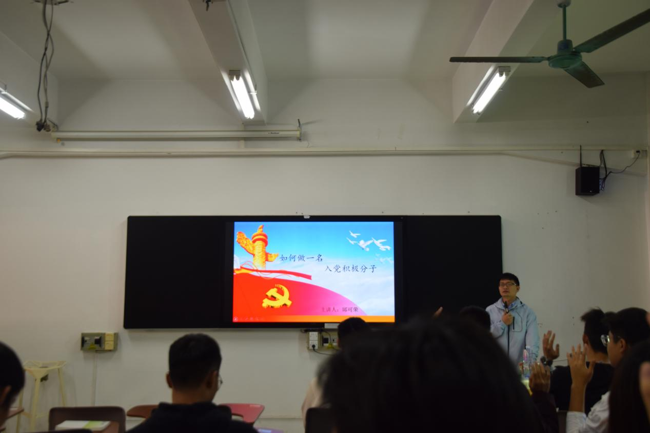 12月3日,sunbet申博分党校在莞城校区机电楼312教室举行第12期入党积极分子培训班第三讲。此次党课由学院辅导员邱可荣主讲,第12期全体入党积极分子参加。