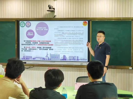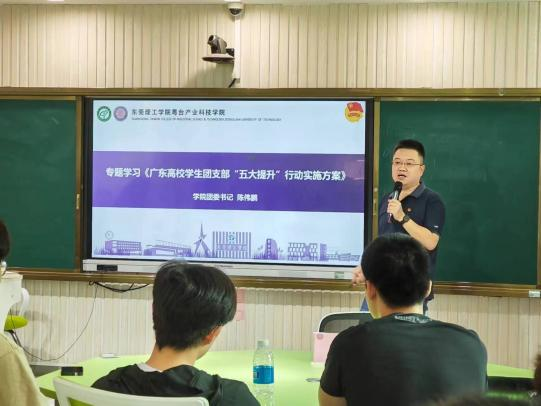 在团课过程中,陈伟鹏老师特别对组建广东青年大学生“百千万工程”突击队和开展绿美广东志愿服务工作进行了重点指导。他强调,这两项工作是广东省共青团年度的重要工作之一,是引领广大团员和青年投身广东高质量发展和绿美广东生态建设的重要载体。他鼓励各级团支书要积极响应,认真组织,确保工作的顺利开展。