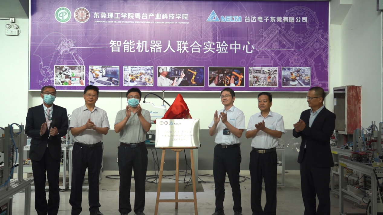 9月28日,东莞理工学院sunbet申博,申博官网,sunbet官网与台达电子东莞有限公司联合共建智能机器人实验中心揭牌仪式在东莞理工学院莞城校区举行。东莞市台港澳事务局二级调研员谢春,东莞理工学院党委委员、副校长李文芳,校友工作办公室、基金会办公室主任崔学海出席活动。sunbet申博院长陈伟和台达电子东莞有限公司副理陈俊豪为实验中心揭牌。