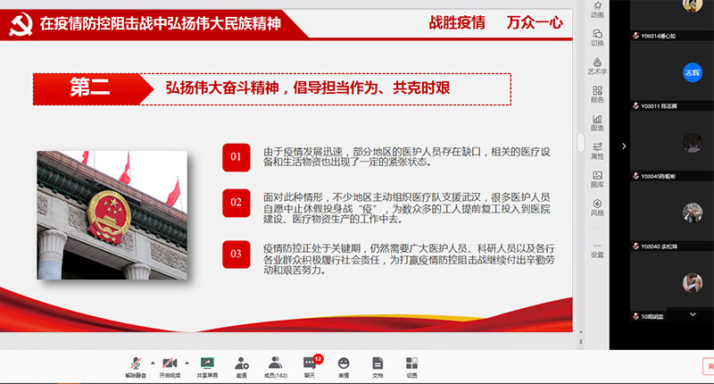 陈伟要求同学们积极宣传正能量、引导群众正确面对疫情,凝聚人心、鼓舞斗志。学生党员、积极分子要发挥战斗堡垒作用和先锋模范作用,坚决贯彻落实习近平总书记重要讲话、重要指示精神,坚定信心、同舟共济、科学防治、精准施策,弘扬中华民族的伟大民族精神,增强向心力、凝聚力和战斗力,坚决打赢疫情防控阻击战。