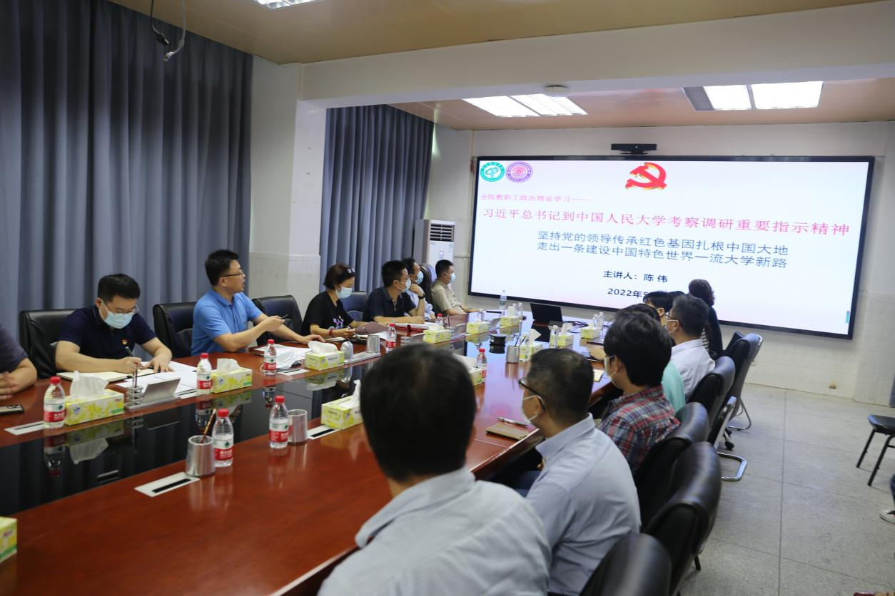 近日,sunbet申博在302会议室召开教职工政治理论学习会,深入学习贯彻习近平总书记到中国人民大学考察调研重要讲话精神。院长陈伟、书记宋美娴、副书记谢春晓及全院教职工参加。会议由宋美娴主持,陈伟作辅导报告。