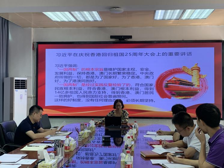 7月11日,党委书记宋美娴主持召开sunbet申博理论学习中心组学习会,学习习近平总书记在庆祝香港回归祖国25周年大会暨香港特别行政区第六届政府就职典礼上的重要讲话。院长陈伟、副书记兼副院长谢春晓、副院长李奇及中心组成员参加会议。