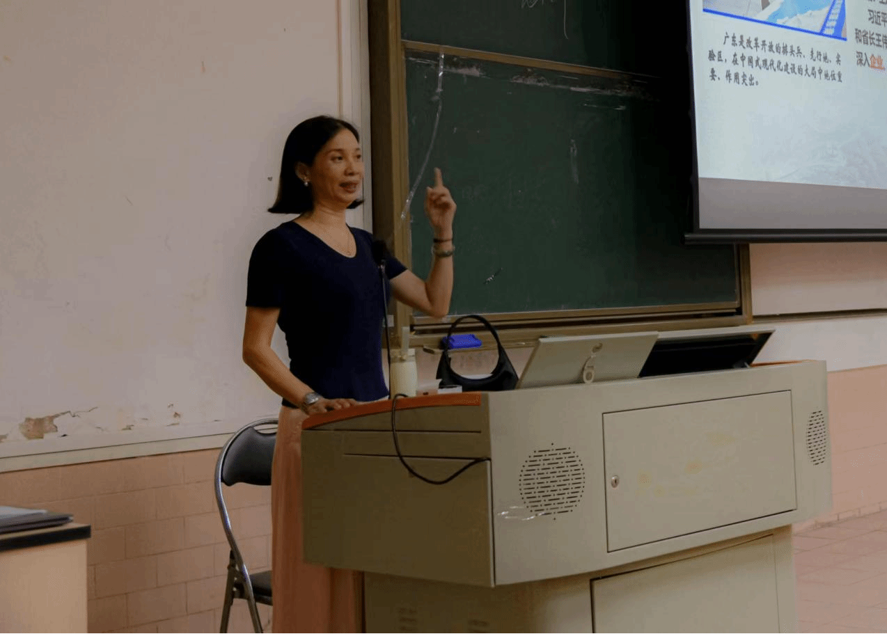 课堂上,宋美娴书记深入浅出地向同学们讲解了习近平总书记在广东考察时的重要讲话精神和省委十三届三次全会“1310”具体部署。她强调,2023年是全面贯彻党的二十大精神的开局之年,广东是改革开放的排头兵、先行地、实验区,在中国式现代化建设的大局中地位重要、作用突出,粤港澳大湾区更是在全国新发展格局中具有重要战略地位。东莞聚焦于“科技创新+先进制造”城市特色,政策优势与地域优势明显,前景开阔。宋书记向同学们提出了新时代大学生的思考:作为新时代的大学生,我们要思考,在三新一高的背景下,我们有何为?当何为?课上,她悉心解答同学们的疑问,鼓励同学们要敢于面对机遇与挑战,没有挑战就没有进步。“要知行合一,要敢于超越!”