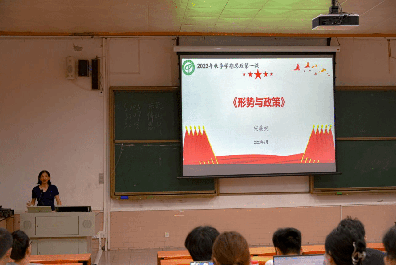 9月22日,sunbet申博,申博官网,sunbet官网党委书记宋美娴在莞城校区五号阶梯教室为2022智能制造工程1班、2班、2022经济与金融1班、2班共138名同学上《形势与政策》秋季学期思政第一课。