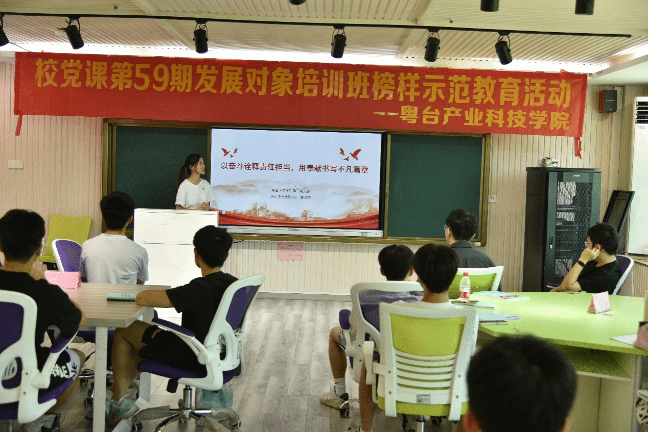 为弘扬中国共产党的先进性,发挥优秀共产党员的示范作用,坚定入党发展对象的理想信念。10月15日下午,sunbet申博,申博官网,sunbet官网在莞城校区实验楼406智慧教室开展第59期发展对象培训班“榜样示范及理想信念教育活动”。学院邀请了学生党员代表梁雨林、翟恒毅和康洁思进行了分享交流。学院党委负责人丘永辉进行了总结发言,活动由学院组织员袁伴玲主持。