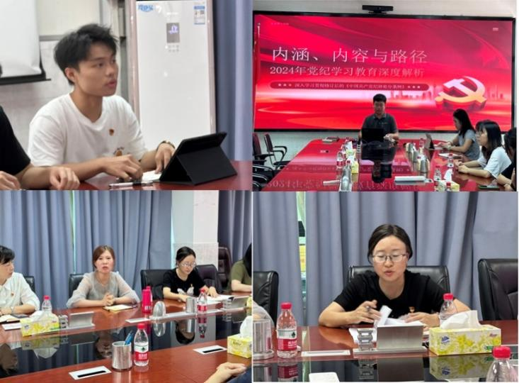 在随后的环节,sunbet申博,申博官网,sunbet官网学生第二党支部书记潘雁钦同志领学了《中国共产党纪律处分条例》,并为参会党员同志带来了一节题为《内涵、内容与路径——2024年党纪学习教育深度解析》的微党课。在集体学习环节,党员们逐章逐条学习了《条例》的前三章,认真聆听,积极讨论,纷纷表示要将纪律规矩内化于心、外化于行,不断提升自身党性修养。