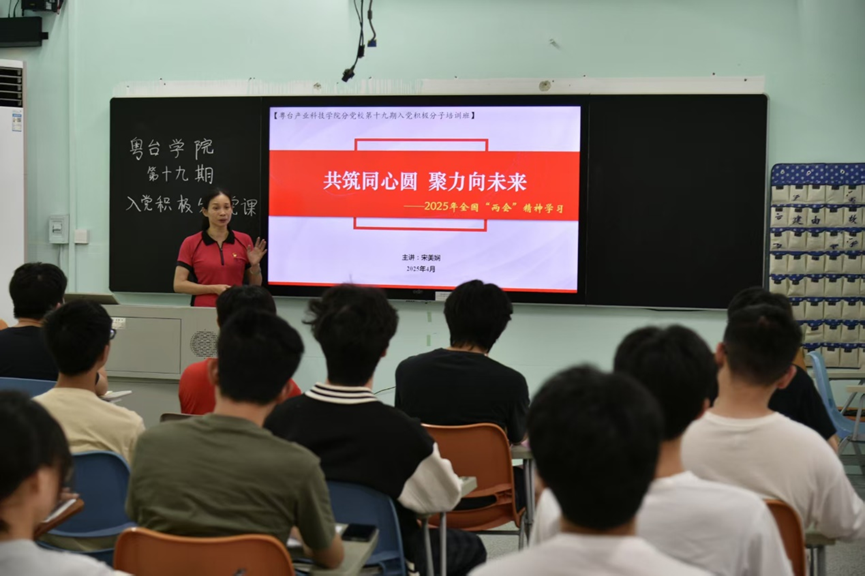 为深入学习贯彻2025年全国两会精神,不断提高入党积极分子政治素质和理论修养,4月28日,sunbet申博,申博官网,sunbet官网在莞城校区实验楼315教室举办第十九期入党积极分子学习培训班。本次党课的主题是《共筑同心圆 聚力向未来——2025年全国“两会”精神学习》,由学院党委书记宋美娴主讲。