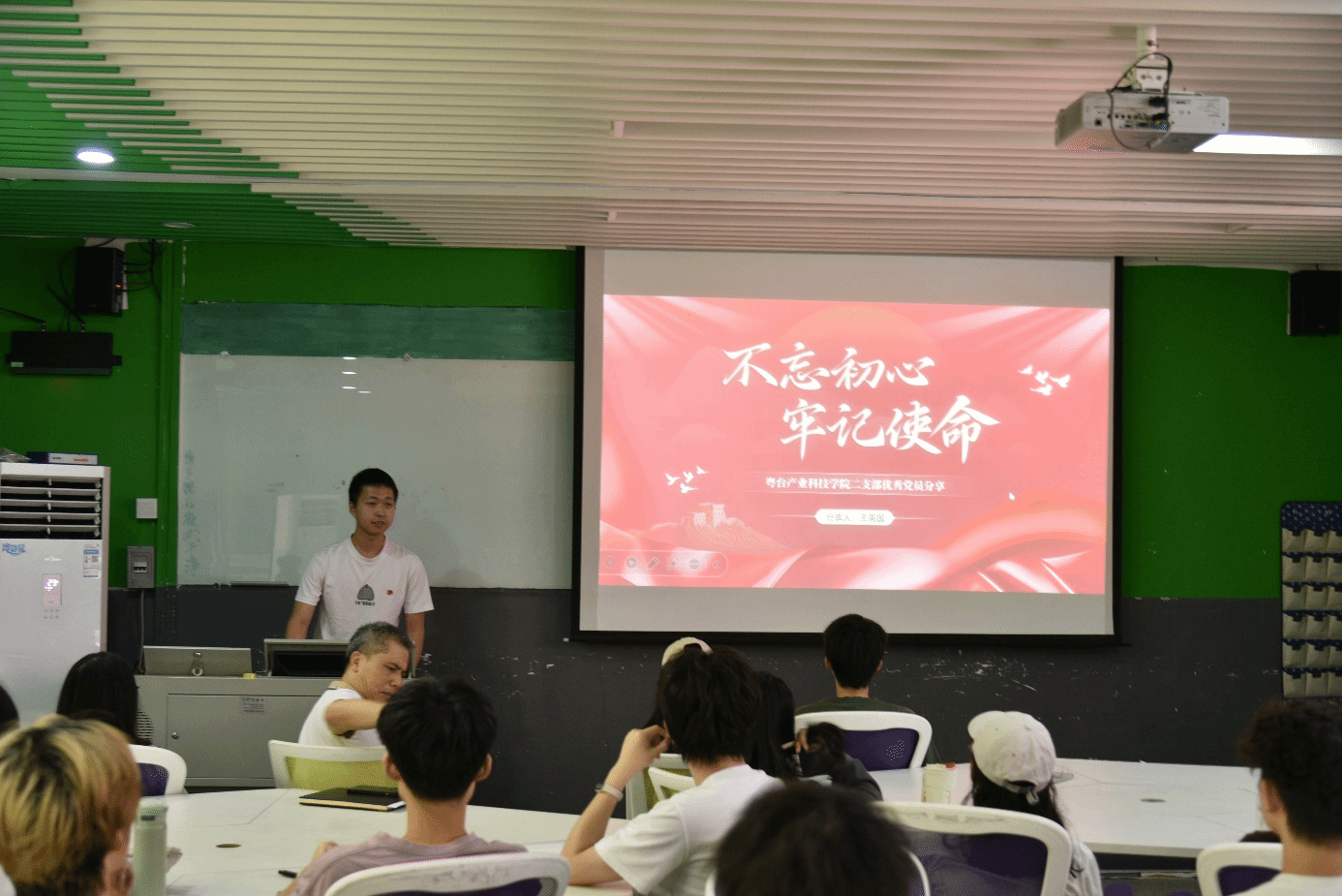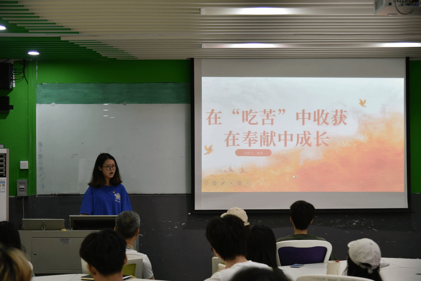 党员王秉国结合自身在学生工作、志愿服务、实习历练及项目参与中的经验收获展开一一分享。他鼓励同学们“知不足而奋进,望远山而前行”。要坚定信念凝聚奋斗力量,为共同的信仰不懈奋斗。