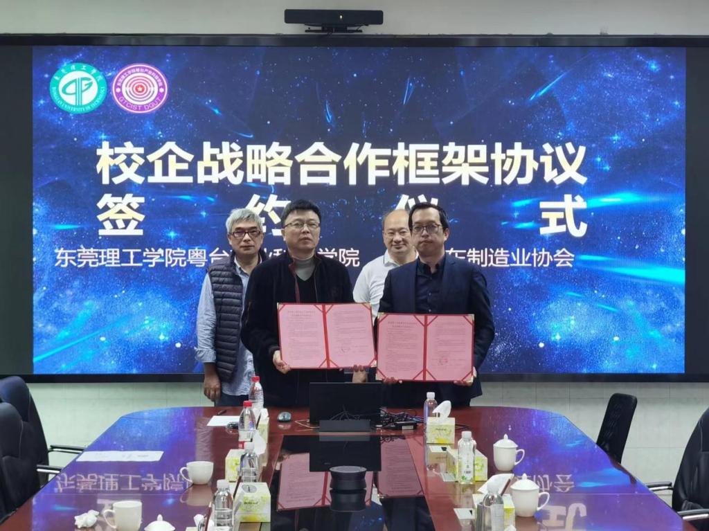 12月13日,东莞理工学院sunbet申博,申博官网,sunbet官网与广东省制造业协会在学院会议室302举行签约仪式,双方签订为期三年的校企战略合作框架协议。院长陈伟、教务长黄灯奎、教务办主任陈尚彦、广东省制造业协会秘书长殷晓斌出席签约仪式。