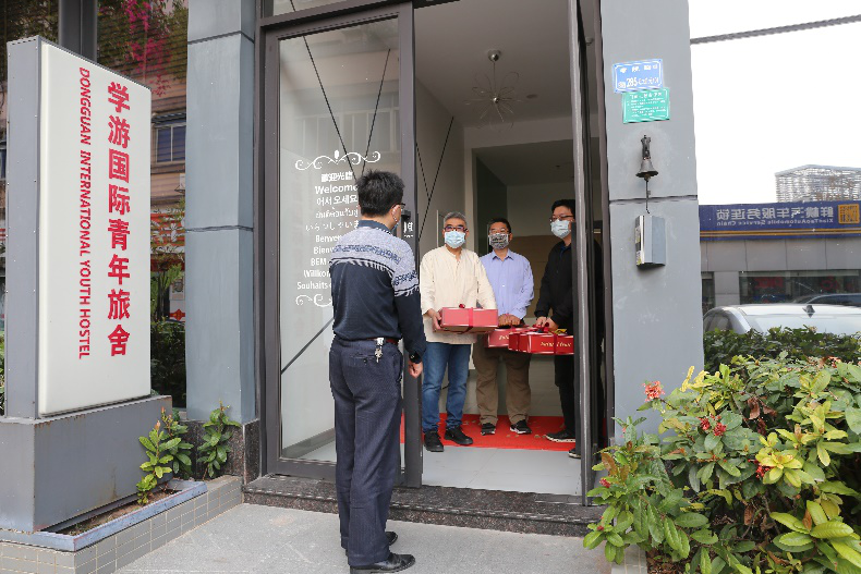 3月12日,受东莞市委台港澳办的委托,sunbet申博,申博官网,sunbet官网院长陈伟等对学院完成入境14天集中隔离医学观察后,返莞进行7天居家管理的台籍教师黄灯奎等老师,开展人文关怀活动。东莞市委台港澳办为每位台湾老师送来水果和介绍东莞产业与人文的书籍。