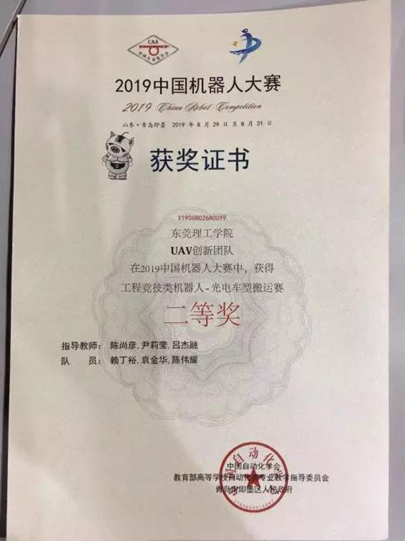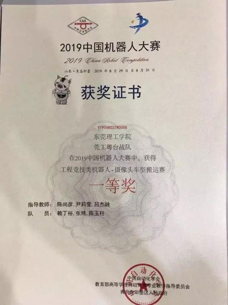 队长赖丁裕表示:今年的比赛难度与往年相比有很大的提升。更高的技术要求与更复杂的比赛形式无疑是备赛中的两大难关。在严峻的挑战下,能取得一等奖与二等奖的成绩,离不开学院的指导与支持。以赛促学,以赛促创,希望以后能取得更加优异的成绩。(文/图 赖丁裕)