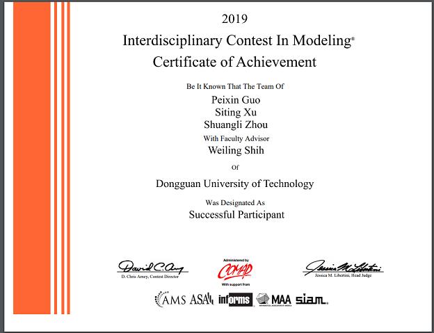 近日,美国数学建模竞赛官方网站传来消息,sunbet申博2017级学生郭培信、许思婷及周双利组成的代表队获得了2019年美国大学生数学建模竞赛(MCM/ICM)SP奖(国际三等奖),是学院第二次获得该赛事奖项。据悉,MCM/ICM是COMAP在美国国家科学基金会等联合支持下组织的,是在世界范围内最权威的、最具影响力的国际性大学生数学建模竞赛。