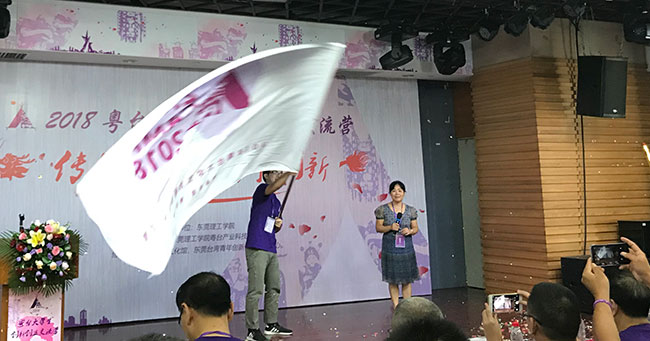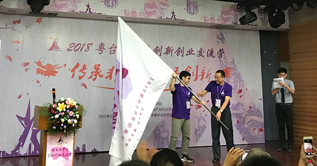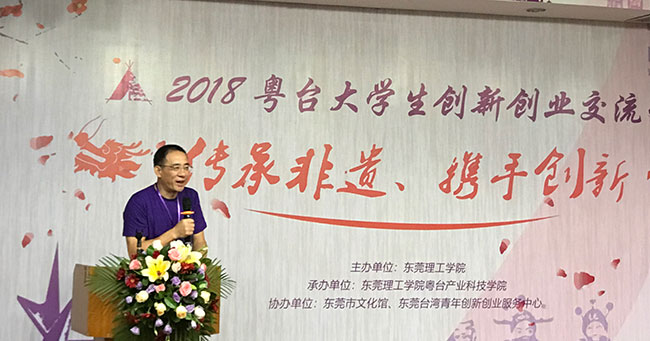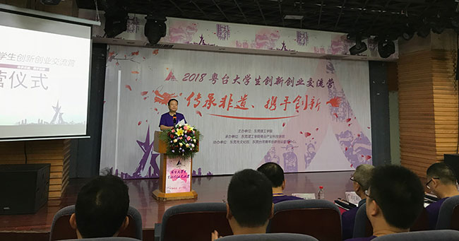 8月24日,由东莞理工学院主办的2018粤台大学生创新创业交流营开营仪式在东莞理工学院莞城校区小剧场隆重举行。广东省人民政府台湾事务办公室副处长阳志萍、东莞理工学院副校长杨敏林、东莞市人民政府台湾事务局副调研员谢春、东莞市莞台经济文化交流中心主任刘伟锋、东莞市文化馆非遗保护部主任何超群、东莞台湾青年创新创业服务中心营运长黄朝凯、东莞理工学院sunbet申博,申博官网,sunbet官网院长陈伟、副书记王玉参加了开营仪式。
