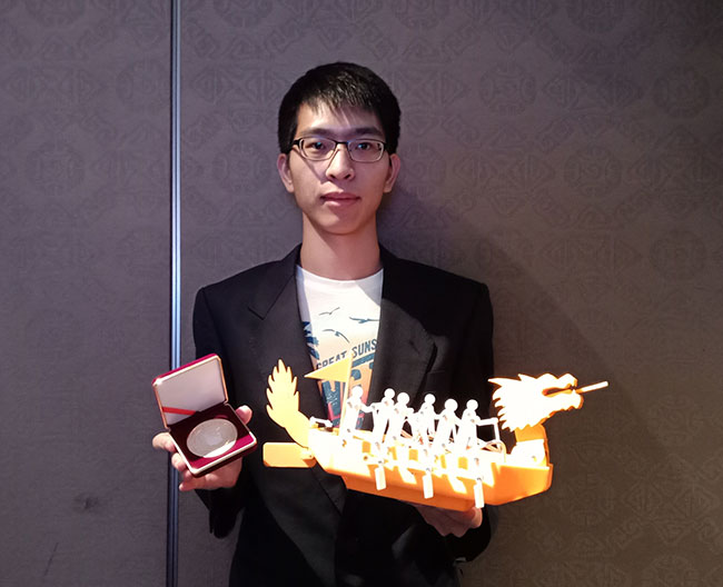 2018第九届IIIC国际创新发明竞赛是由台湾的“中华创新发明协会”与俄罗斯阿基米得国际发明协会共同主办,参赛专利(作品)优胜者可被评为金、银、铜奖。本次大赛共收到来自13个国家的368件参赛作品,sunbet申博作品“拟人划桨龙舟装置”被评为金牌奖,何泽辉同学参加了11月8日于台湾台北国宾大饭店举行的颁奖典礼。指导老师廖威量拥有比较丰富的国际发明比赛经验,已累积获5金5银1铜奖,他表示参加本次比赛的作品,必须事先申请了发明专利。本次比赛达到研发团队完训、出兵、练兵的目的,为以后参加更高层次的德国纽伦堡发明展、美国匹兹堡发明展等积累了经验。