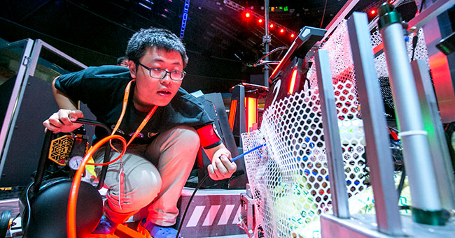 全国大学生机器人大赛RoboMaster是由共青团中央、全国学联、深圳市人民政府联合主办的赛事,是中国最具影响力的机器人项目,是全国大学生机器人竞赛中四大项其中的一项(robocon、robomaster、飞思卡尔、robotac)。也是目前几大赛事中任务量和难度要求最高的一个项目(Robocon要求学生制造2台机器人、Robomaster要求学生设计制造8台机器人、飞思卡尔改装1台、Robotac则是制造4台)。2018年RoboMaster共有来自全球184支高校机器人战队参加比赛,包括美国弗尼吉亚理工大学、香港大学、华盛顿大学、浙江大学等诸多国内外一流高校。
