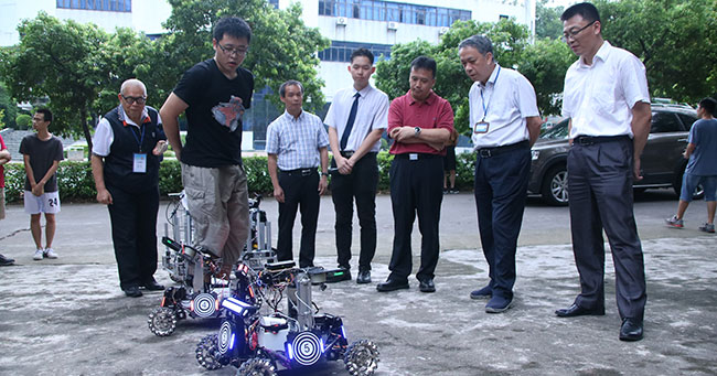 队员与莞工sunbet申博机器人实验室的成员在松山湖机器人产业基地汇合,开始制作组装机器人。sunbet申博院长陈伟专门到组装现场给联队加油打气。7月初,sunbet申博实验室的同学们在学院的支持下,队员们利用小学期在半个月内完善了战队的机器人。7月中旬小学期展示活动,sunbet申博机器人实验室成员回到莞城机电楼向校领导李琳、马宏伟以及学院的机器人爱好者进行了展示,并且在学院的支持下在莞城校区的校内招待所进行机器人的最后阶段的调试、操作手练习。