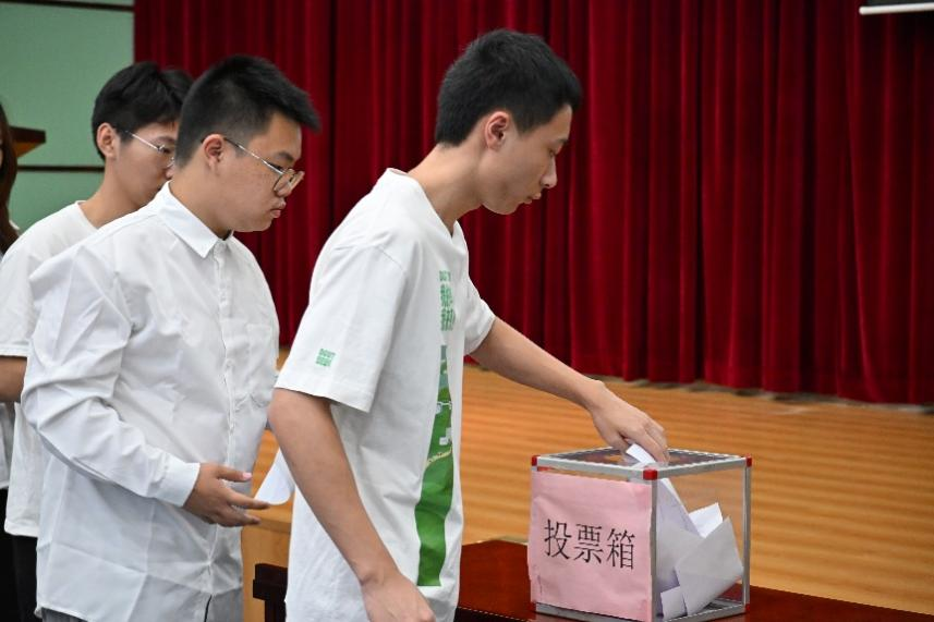 在竞选投票环节。7名学生会主席团候选人陆续上台发表竞选讲话。经民主选举,尹菲尔、周陶峰、黄鹏豪当选第sunbet申博十一届学生会主席团成员。同时,大会还选举了林钟博,黄鹏豪,周陶峰,李汤维,尹菲尔,蔡永金,姚博伦,邹馨蔓,李燊,郑雅文当选sunbet申博第十一届学生委员会成员。
