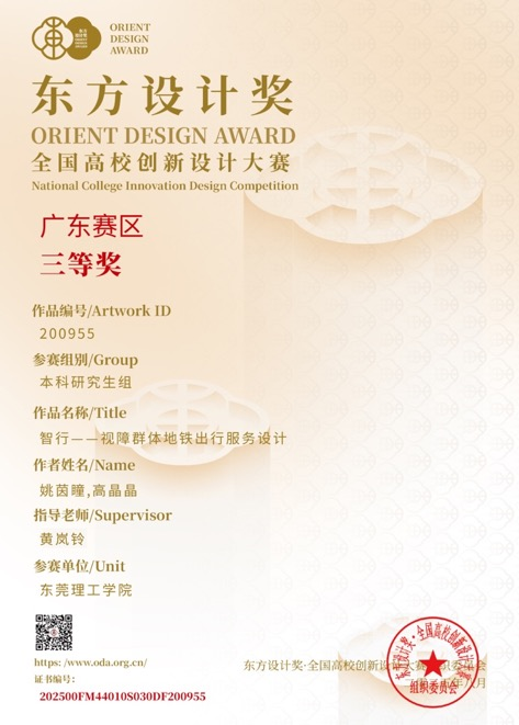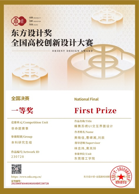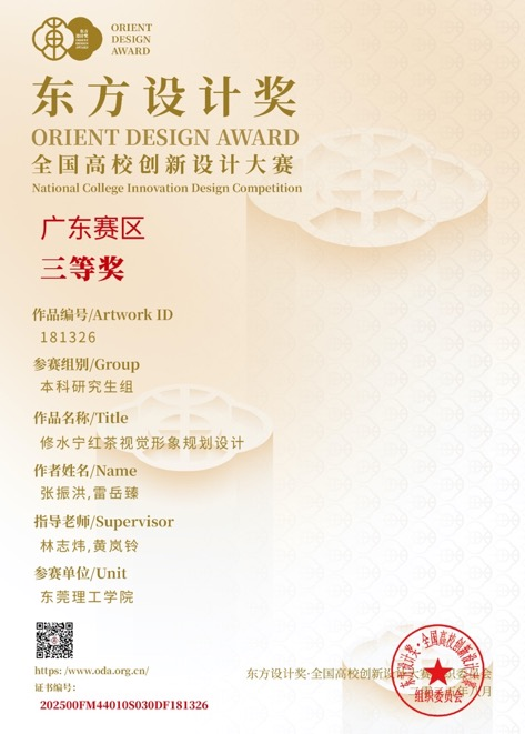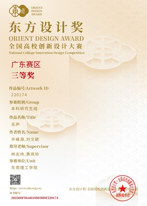 近日,2025第11届东方设计奖·全国高校创新设计大赛接续公布省级赛及国赛奖项。东莞理工学院sunbet申博学生充分展现了扎实的专业素养和卓越的创新精神,多个参赛作品取得了优异成绩。在省级赛共获得3个三等奖,并接续在国赛再获得一等奖1 项,三等奖1项。