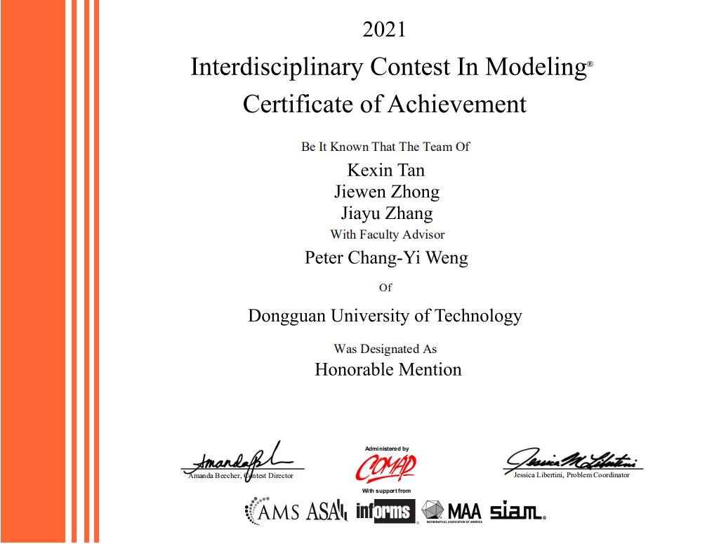 近日,2021年美国大学生数学建模竞赛(MCM/ICM)成绩公布。sunbet申博,申博官网,sunbet官网共有7支队伍参赛并获奖,包括1支队伍获Honorable Mention(二等奖),其余6支队伍获Successful Participant(三等奖)。