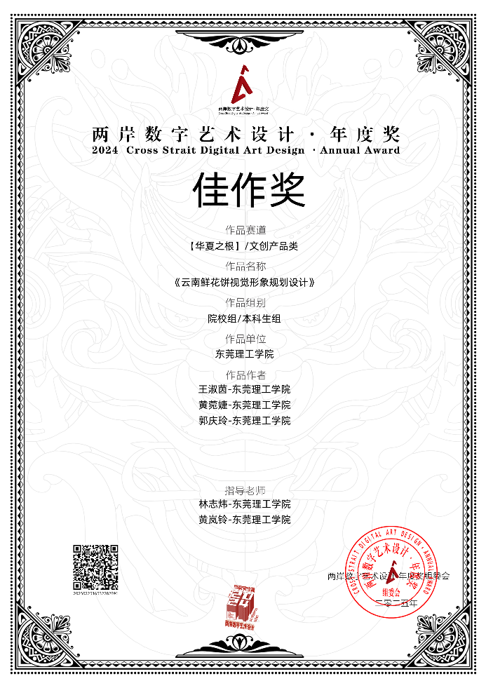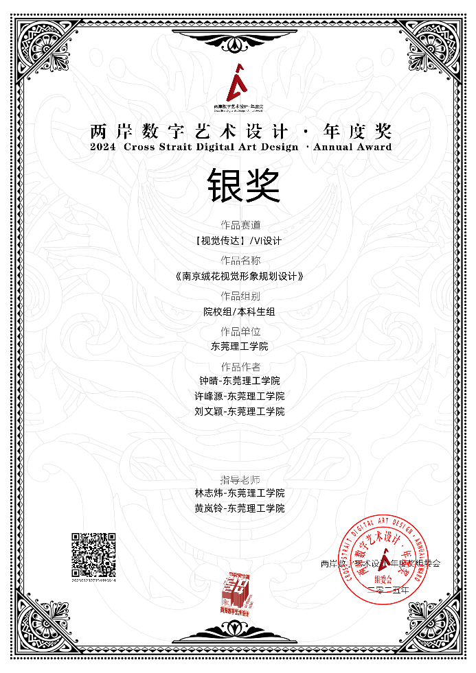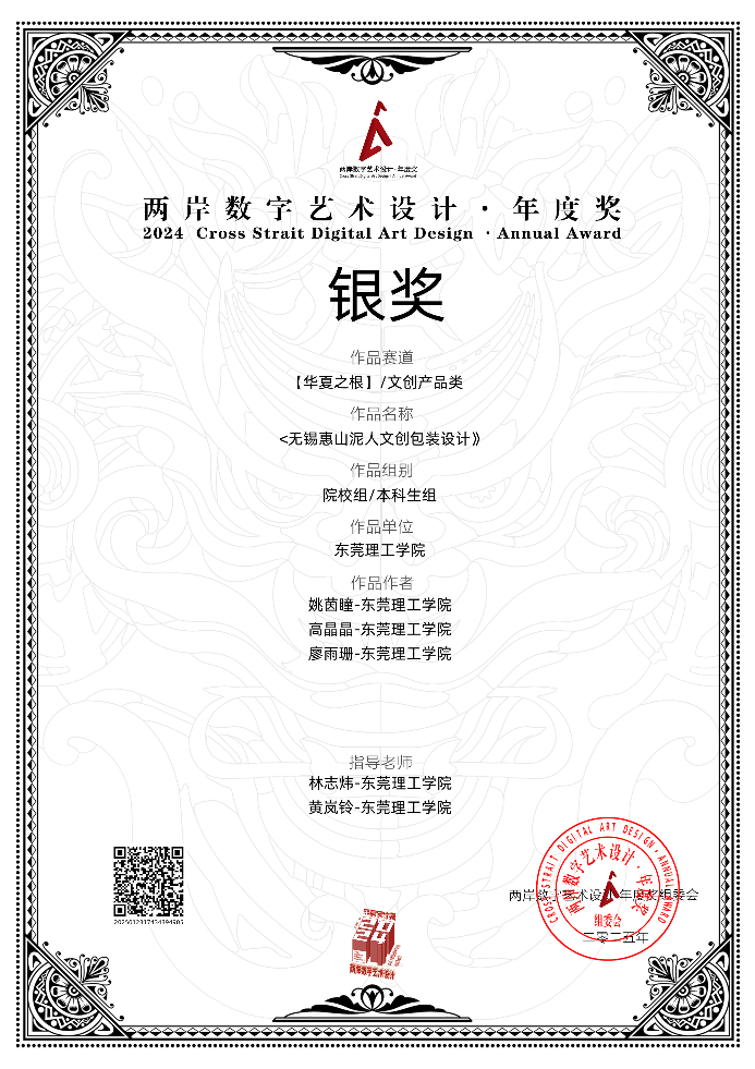 院林志炜老师、黄岚铃老师共同指导学生参加“2024年两岸数字艺术设计年度奖”,荣获银奖2项、铜奖1项、佳作奖1项,共4项奖!