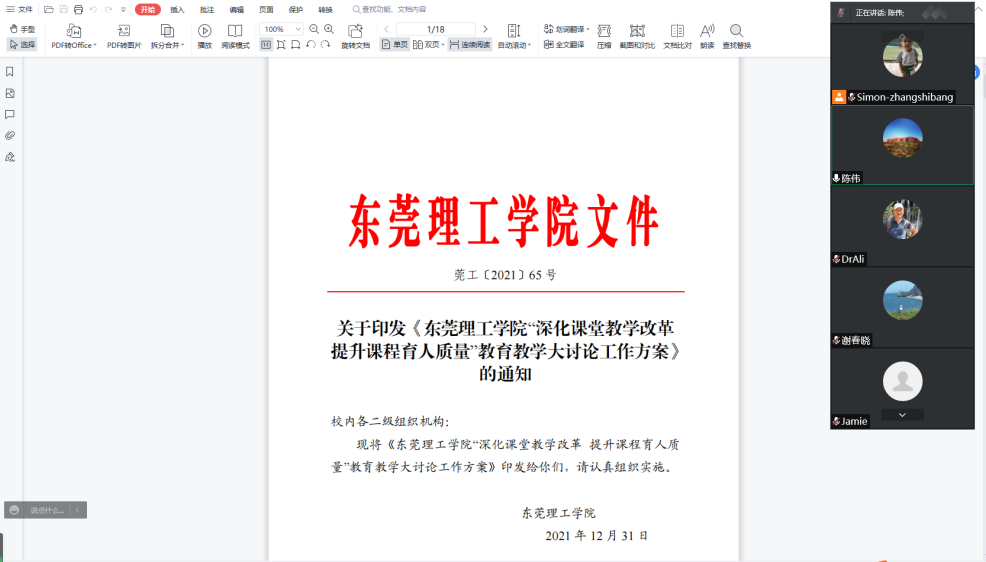 会上,院长陈伟对学校下发的《东莞理工学院“深化课堂教学改革,提升课程育人质量”教育教学大讨论工作方案》及《教育部关于深化本科教育教学改革全面提高人才培养质量的意见》向全体教职工进行了详细解读。